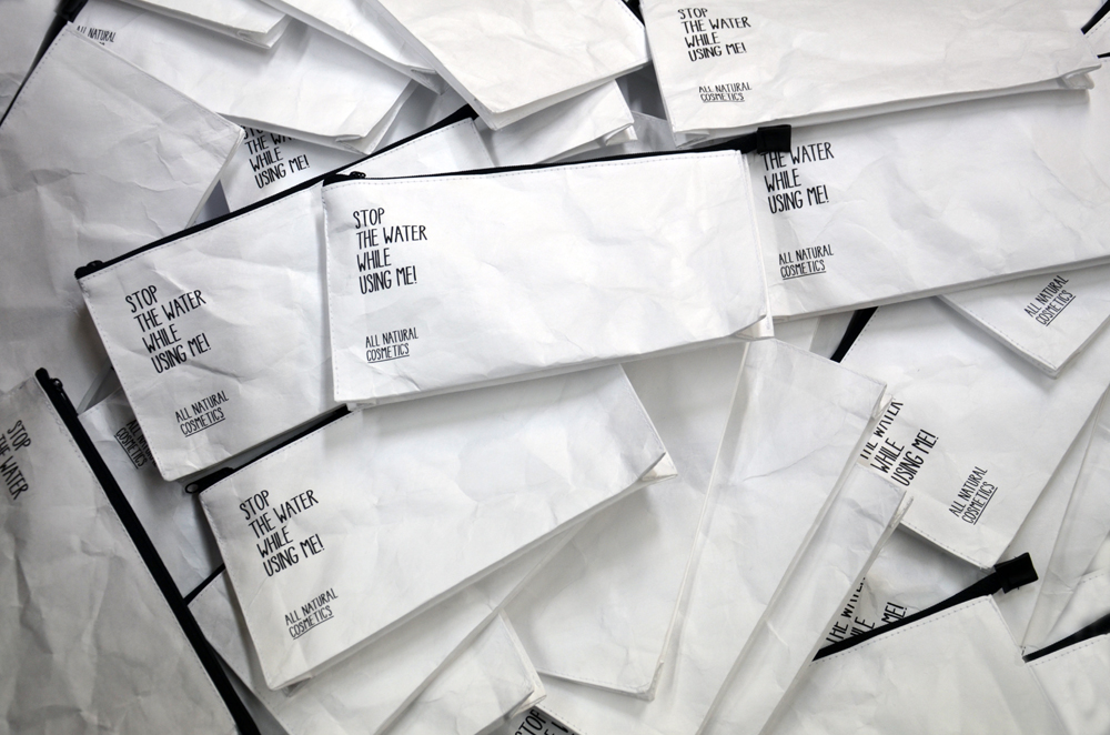 Für die erfolgreiche Kosmetiklinie STWWUM! entwickelten und fertigten wir als erster Hersteller im Markt Kosmetik-Taschen aus unzerreißbarem und wasserfestem Tyvek-Papier. Das erfolgreiche Neukundenmailing und die hohen Abverkäufe zum Weihnachtsgeschäft wurden Dank deutscher Produktion auch ohne chinesische Großauflage zum partnerschaftlichen Erfolg. Bis heute wird mit diesem Material gefertigt und mittlerweile von vielen Accessoire-Herstellern eingesetzt.